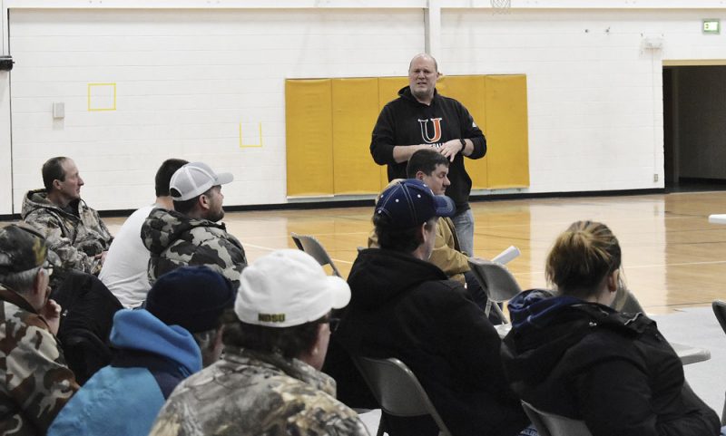 Sue Sitter/PCT Rugby Farmers Union Elevator Manager David Holzwarth, standing, answers a question by a First Street resident at a special city council hearing March 1.
