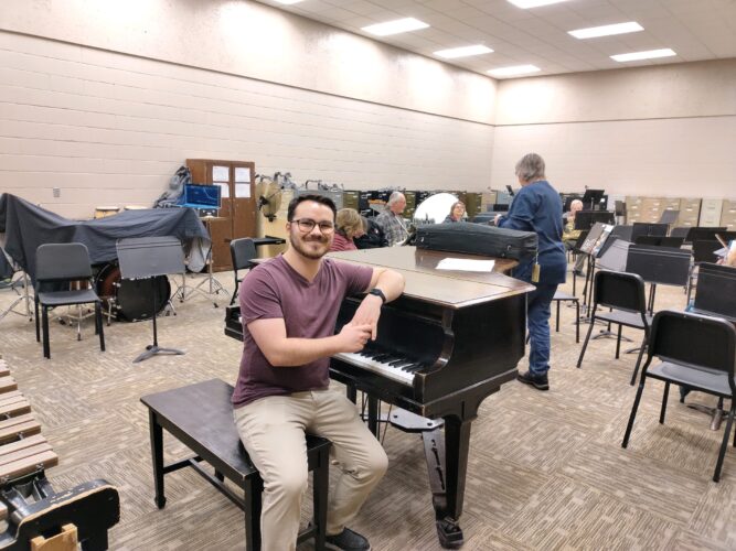 Sue Sitter/PCT Anthony Schreier sits at the piano before the Village Arts Community Orchestra begins its rehearsal for a spring concert, set for April 2.