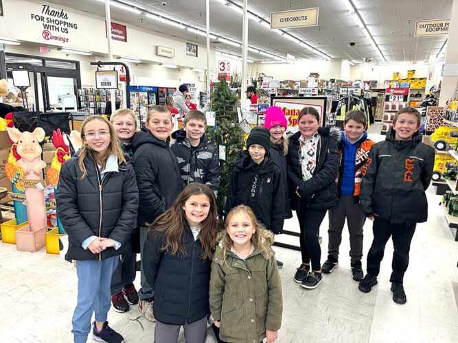 Submitted Photo Maria Rice’s fourth-grade students from Little Flower School purchased gifts at Runnings in Rugby this month for Project Joy with the donations they collected.