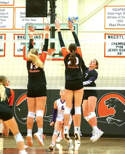 The Rugby Panthers High School Volleyball team took on the Harvey/Wells County Hornets in their last game of the regular season and dropped 3-1.